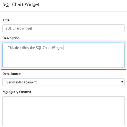 Upon saving the widget config, an info icon is displayed to indicate that a widget description is available. Show the description by clicking that info icon. You may also opt to hide it again.