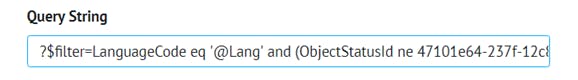 ?$filter=LanguageCode eq '@Lang' and (ObjectStatusId ne 47101e64-237f-12c8-e3f5-ec5a665412fb and ObjectStatusId ne eec83e3c-0106-d4c0-99ea-93b75fd23020)
