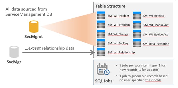 There will be scheduled SQL agent jobs in the Analytics database that will transfer work item data from ServiceManagement tables on a specified schedule, set forth during the installation. By default, the job sync schedule is set to every 24 hours, however this can bemodified during installation to suit your organization's requirements and policies.