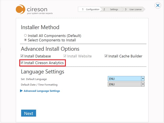 To install Cireson Analytics, users will need to select the Install Cireson Analytics option under Configuration -> Select Components to Install.ย