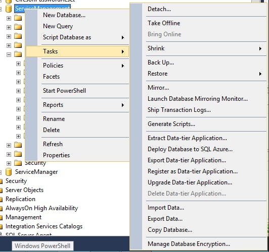 Right click on the ServiceManagement DB and choose Tasks -> Upgrade Data-tier Application