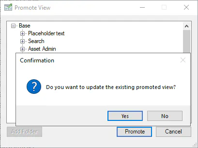 You can update or re-promote a view following the same steps as described above, however when you promote the view, you will be prompted to update the existing promoted view or not.
