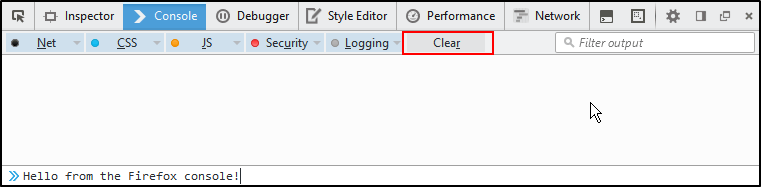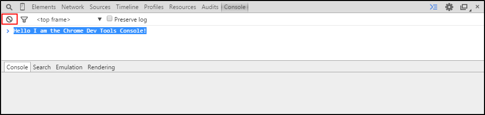 If there is anything in the console already press the 'clear' icon to clear out the current text in the console: