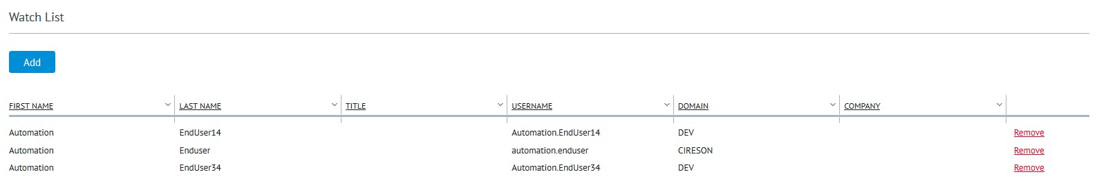 Important Note: Any modification to the Watch List Query will affect all users who can view the Watch List dashboard.