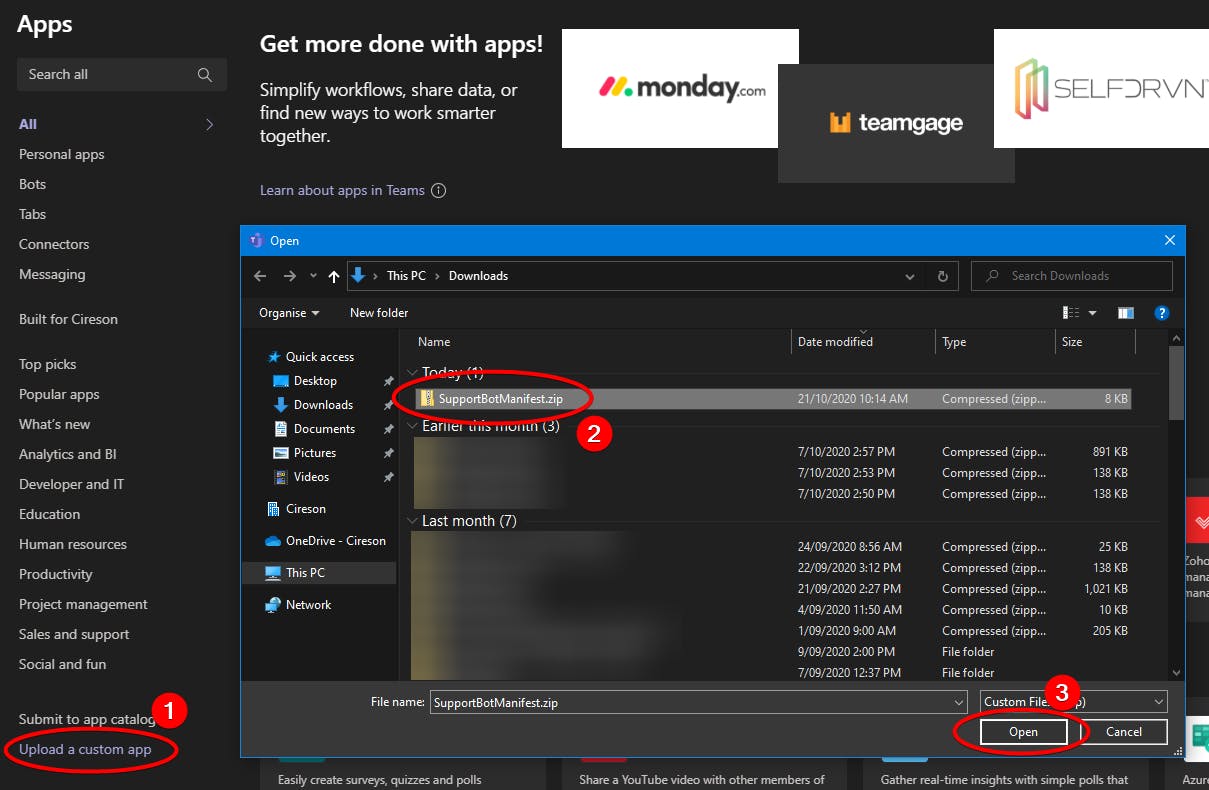 - Click on Upload a custom app and upload the .zip package you downloaded Step 5 of Configure SMP