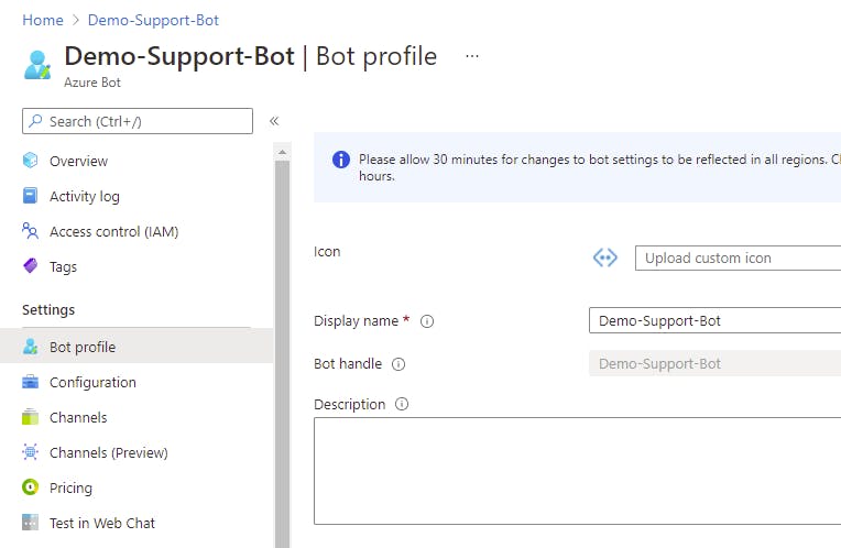 - Set the Display Name of your bot to "SupportBot"