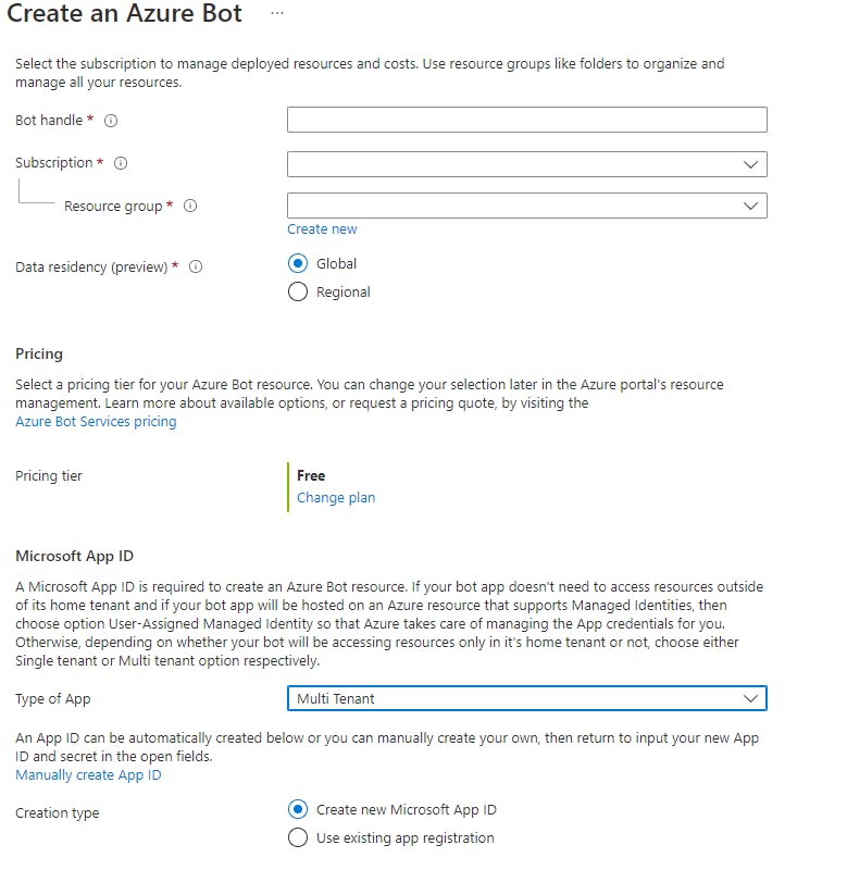 - Bot Handle: This is a unique name across all Azure tenants and is different than the Display Name of the bot you will see in Teams