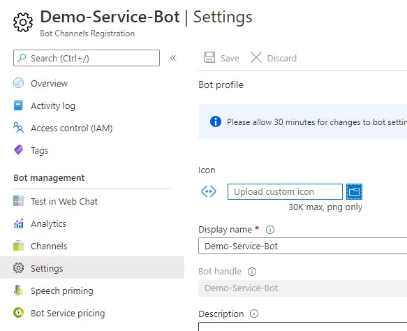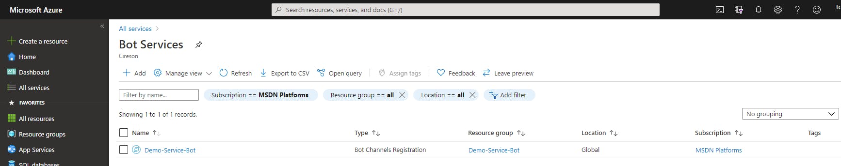 - Go back to Bot Services, and click on your newly created Bot service