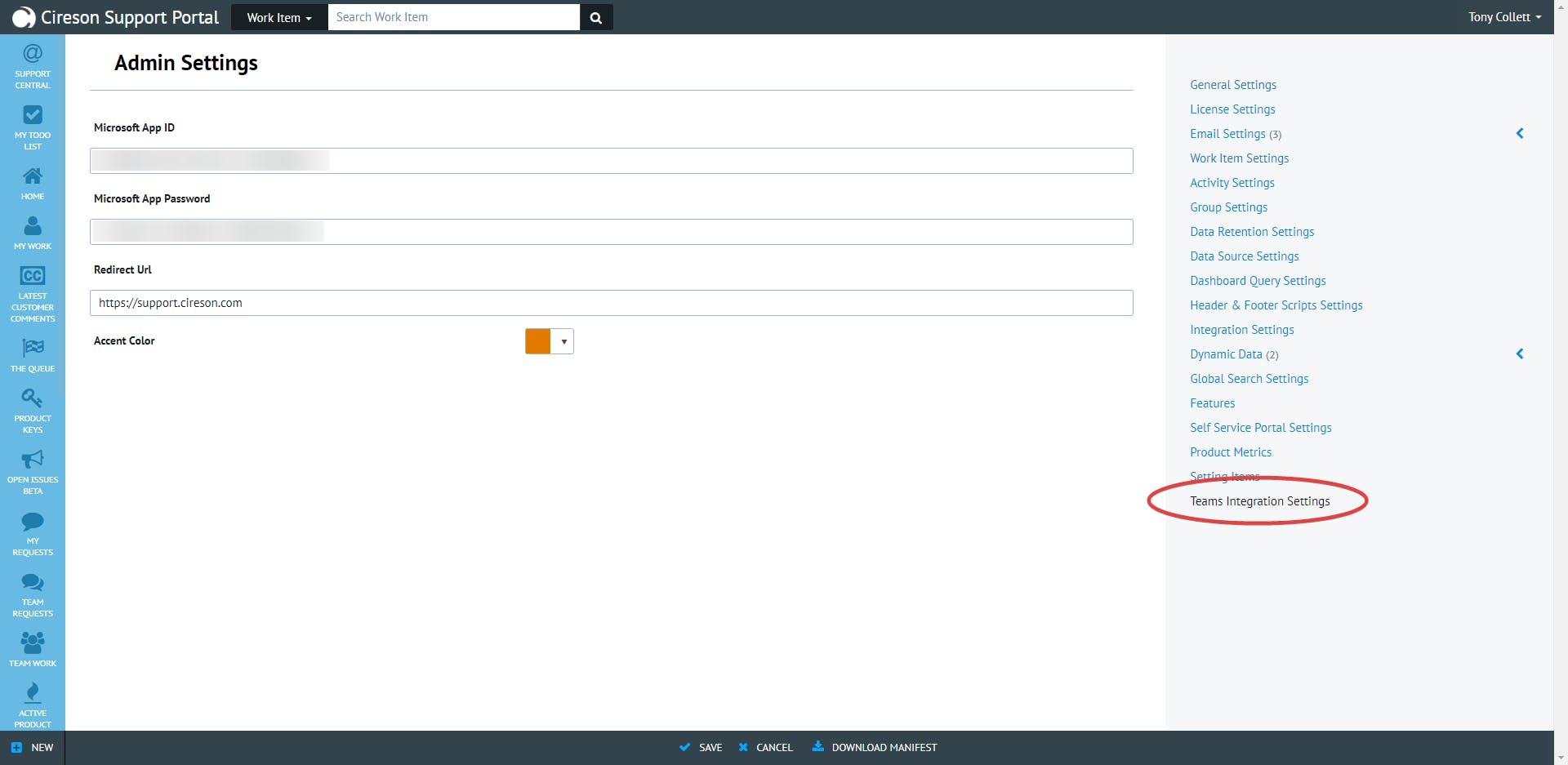 - Click on Teams Integration Settings