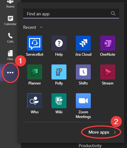 - Log into MS Teams and click on the overflow menu (...) on the left hand bar