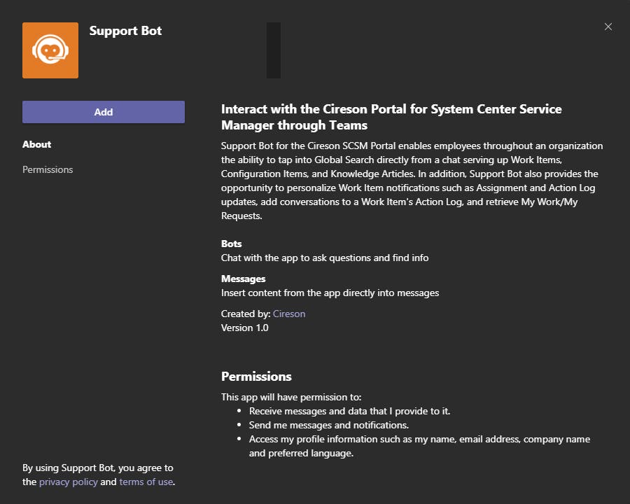 - Your Cireson Service Manager Portal must be public facing for Azure Bot Services to be able to communicate with it