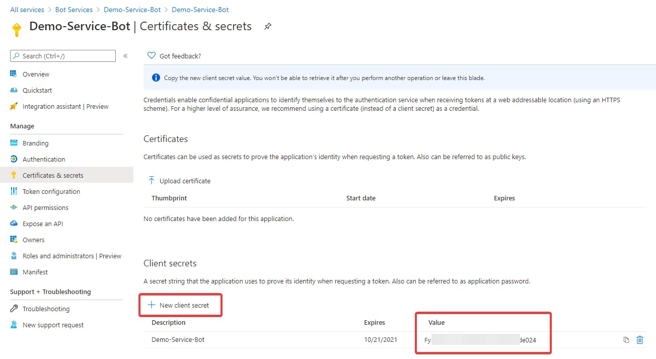 - Click on New Client Secret and go through the steps to create a secret key
