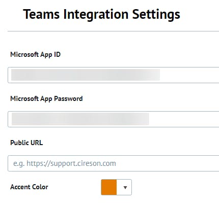 In this page users can configure the integration for the Cireson Portal to work within Microsoft Teams