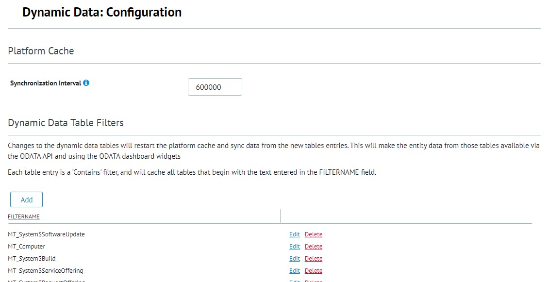 Dynamic Data is a run time compiled cache that builds your Platform Cache models based on the data structure of your SCSM database environment. This compilation is limited to Service Manger managed types and custom managed types. Using the Dynamic Data setting you can customize what manage types get cached in the Platform Cache.