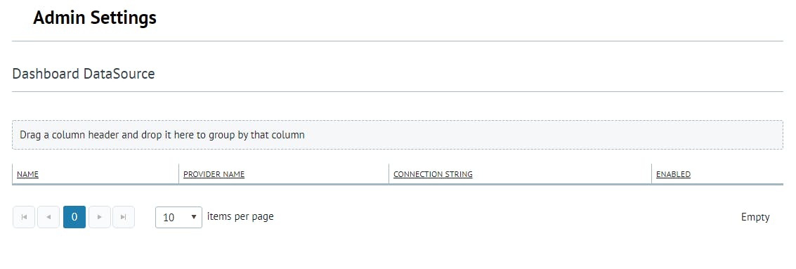 This page allows the user to add, and manage Dashboard Data Sources