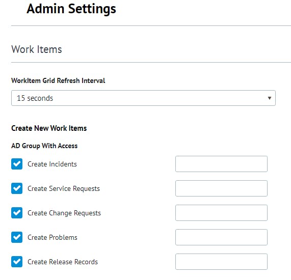 - Set the Work Item Grid Refresh interval - Work Item Tables in the Cireson Portal will be refreshed at this value