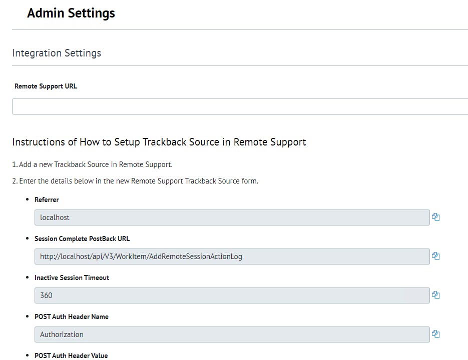 Note: Trackback sessions (Cireson Portal Integration) requires Remote Support version 5.8.0 or higher