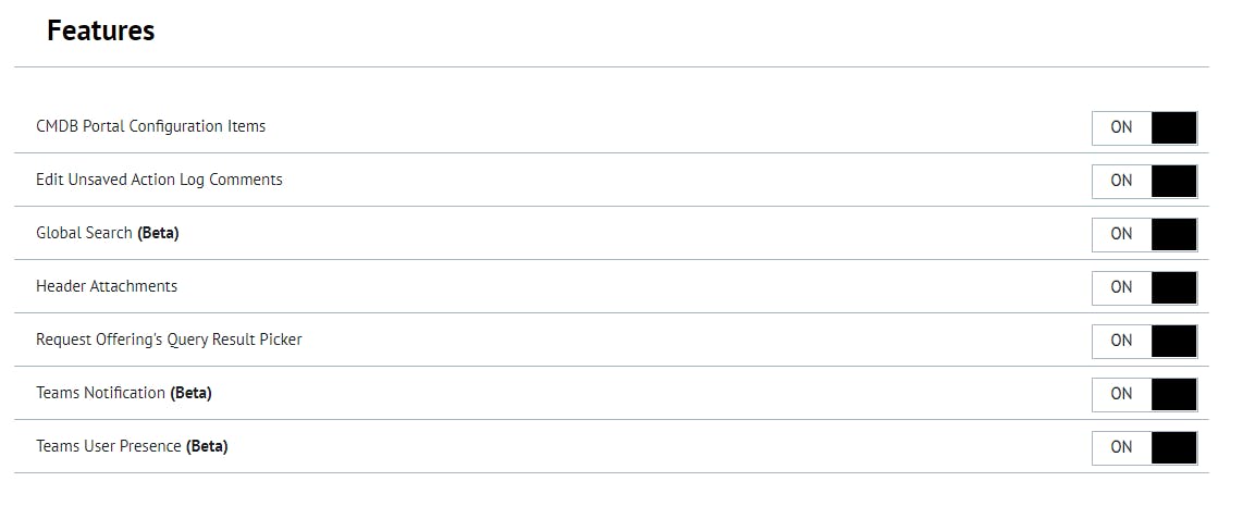This page allows users to turn on and off new features added to the portal.