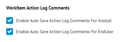 - New Feature (v10.5+): WorkItem Action Log Comment Auto Save (Requires the Auto Sve Action Log Comments Feature enabled in the Features settings)