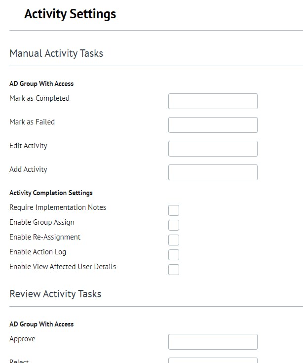 - Restrict manual activity task access to specific AD Group