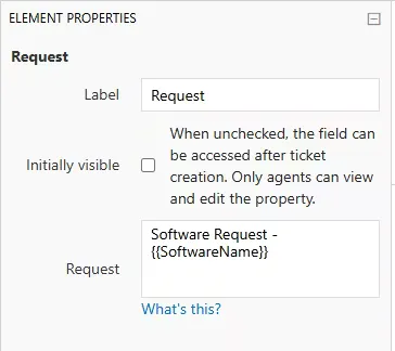 Above you can see the custom text input named SoftwareName, and how it is added to the Request field.