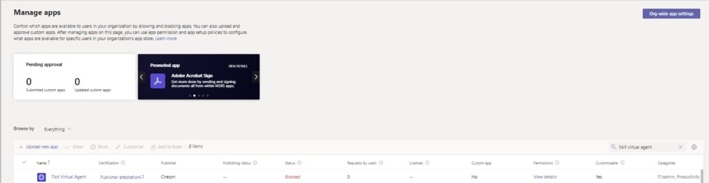 Log into the Teams Admin center and navigate to Teams Apps -> Manage apps.