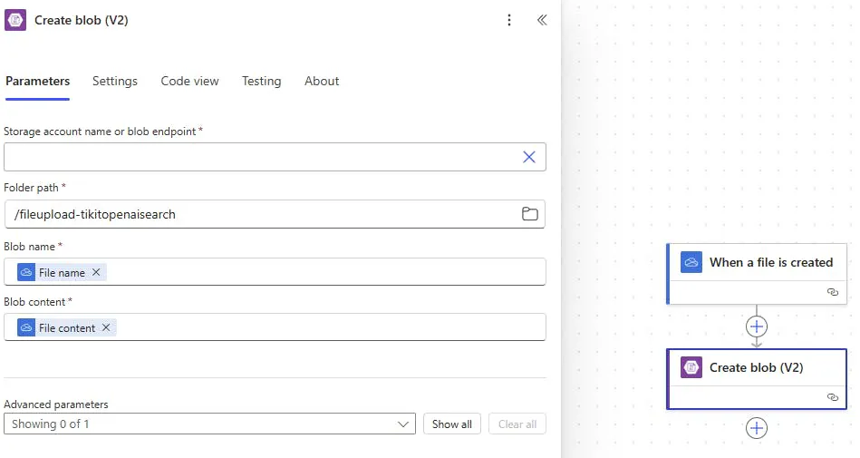 Blob name: From the OneDrive trigger, this is the name of the file to be uploaded