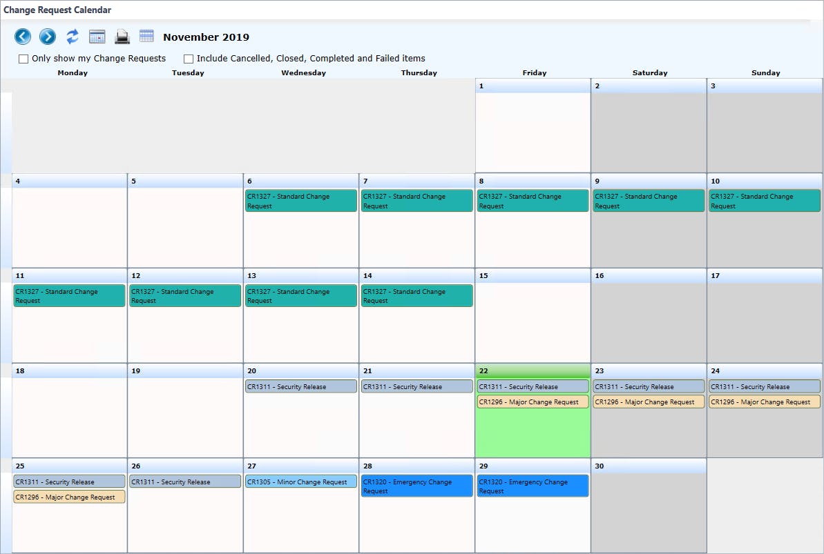 - Select “Change Request Calendar” to initiate the Change Calendar