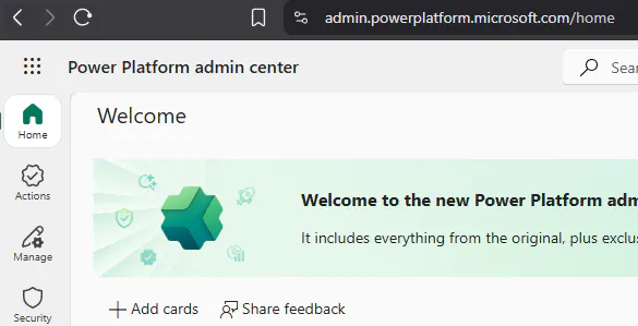 1. Navigate to https://admin.powerplatform.microsoft.com/home
