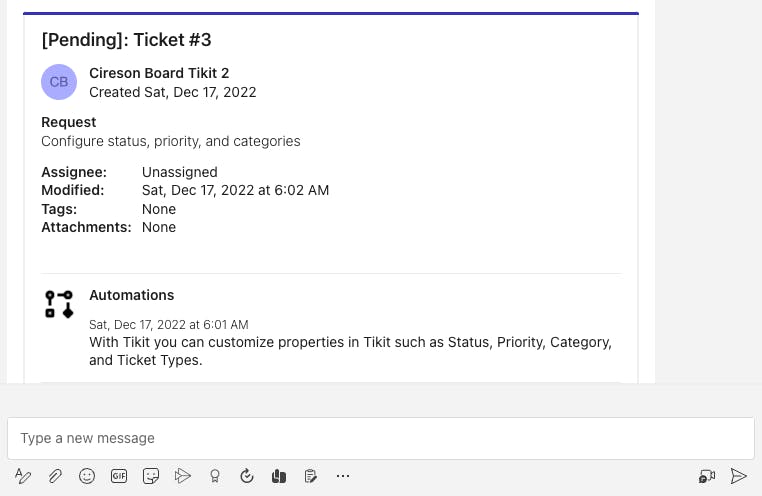 Tikit Virtual Agent makes sure that users are updated on the status of their tickets with Teams notifications.