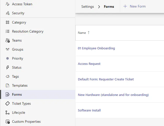Forms provide a way to get more information from your users whether they are asking for more permissions or agents submitting change requests. In combination with Templates, you can use one or many forms on a single Template