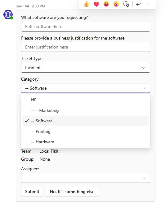 Assignment Set an Assignee on the ticket using a pre-configured Team and Group, see below for more details