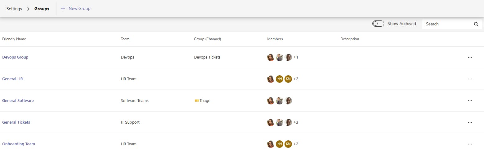 Manage groups in Tikit to direct work to multiple channels in Teams.
