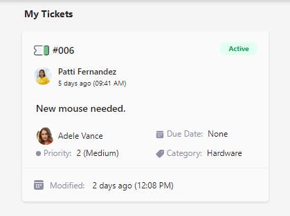 A list of active tickets assigned to your group. Active tickets have a status other than Closed or Deflected.