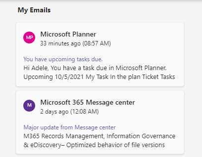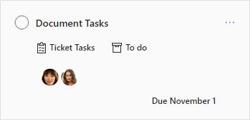 A list of the Planner tasks assigned to you. New tasks can be added and current tasks can be completed, re-assigned, and deleted.Â