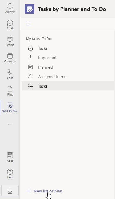 Open the Tasks by Planner and To Do app, then select + New list or plan.