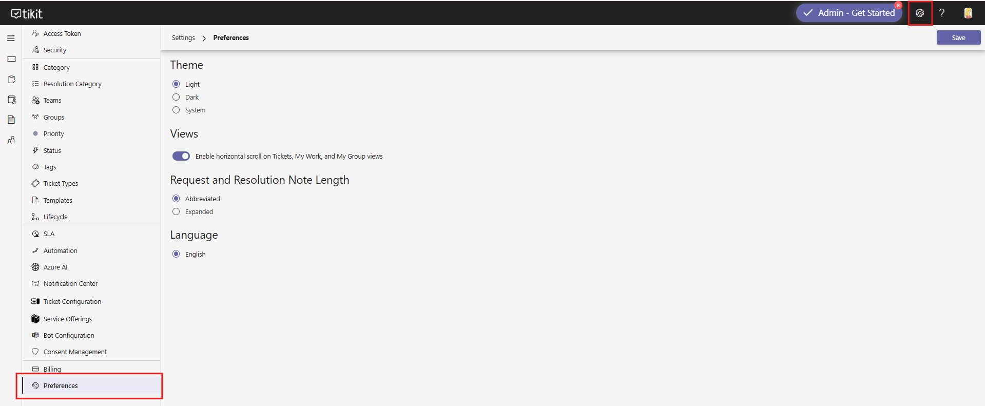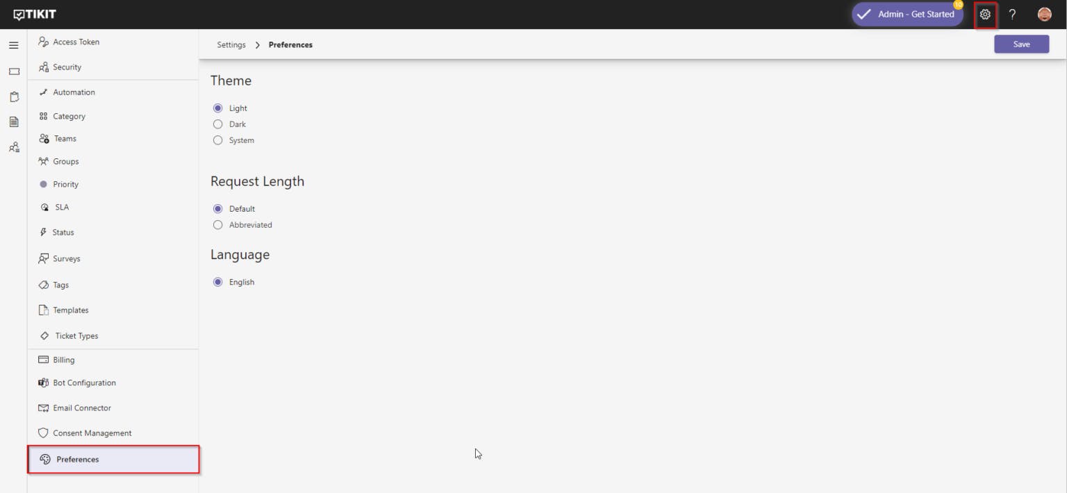 Languages will auto-populate in this list based on which languages have been configured in your browser settings. Setting the language here will change the default language for the Tikit web interface on a per-user basis.