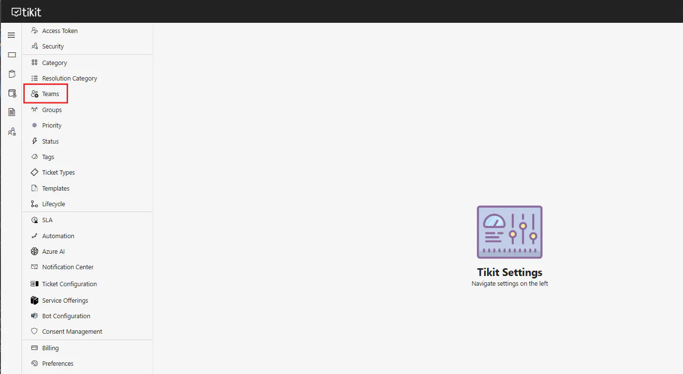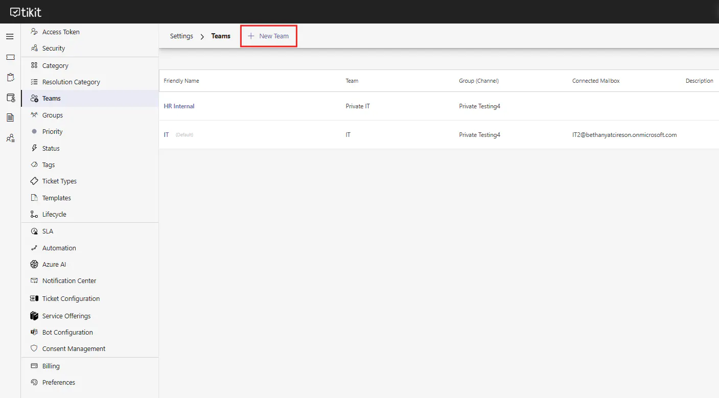 Configuring an alternate Team from the default will allow for separation for visibility of tickets for users in different Teams enabling additional departments to use Tikit.